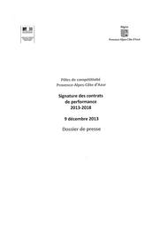 Pôle de compétitivité Provence-Alpes-Côte d'Azur : signature des contrats de performance 2013-2018 : Dossier de presse.